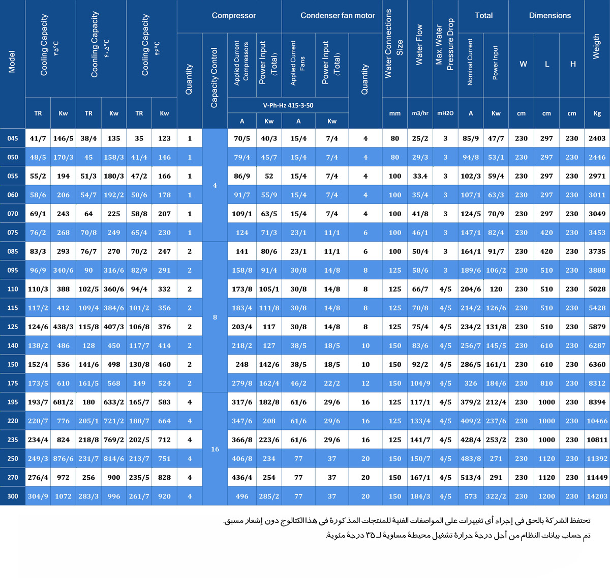 - مبردات هواء ذات ضواغط لولبية تشيلرز مع إمكانية تشغيل هجين (ضاغط للتحكم الخطي بالسعة و ضاغط آخر يعمل كنظام عاكس inverter)