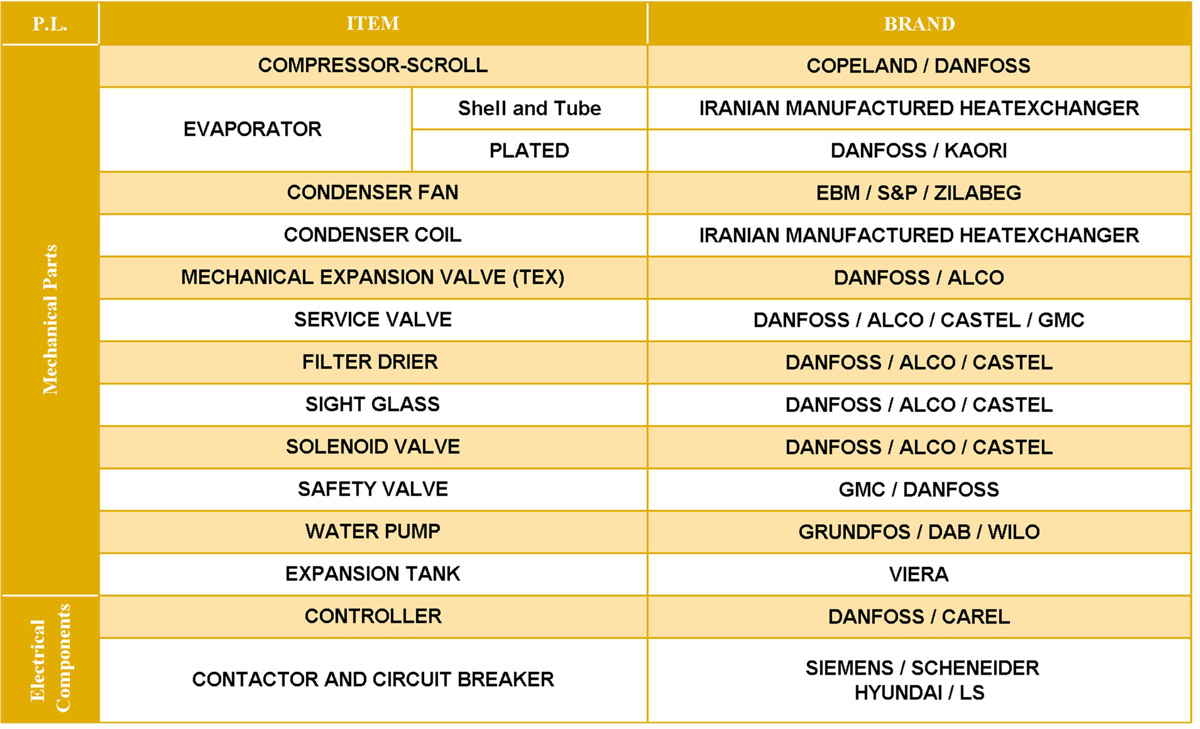 - امتلاكها ضواغط سكرول معلقة من صنع شركتي Copeland أو DANFOSS
