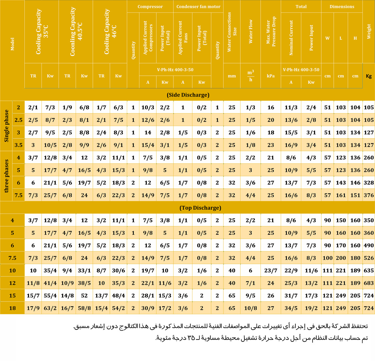 إن استخدام هذه الشيلرات (ما عدا أحادية الفاز و المجموعة ذات الـ 4 و 5 طون) لضاغطين يؤدي إلى الإستهلاك الأمثل للطاقة في مختلف الحالات.