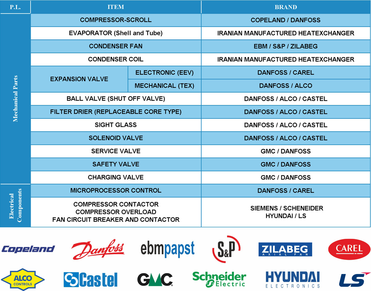• Having closed scroll compressors (Copeland, DANFOSS)