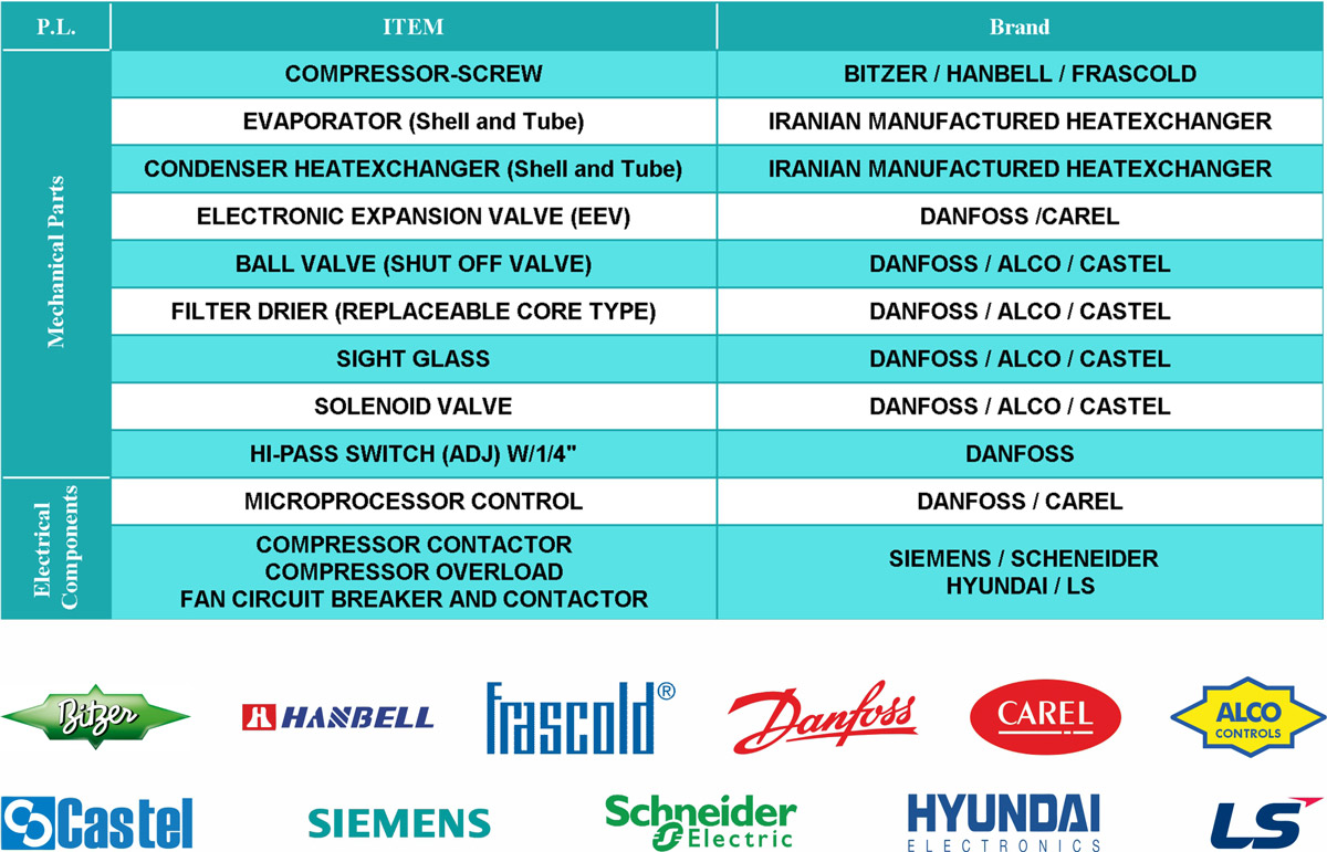 Наличие полузакрытых винтовых компрессоров (Bitzer, Германия; Hanbell, Тайвань)