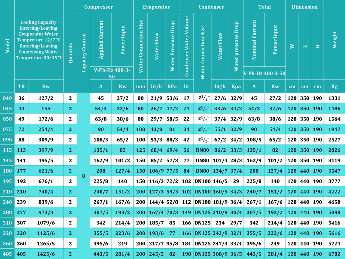 Винтовые чиллеры с водяным охлаждением (серия ALSW с винтовыми компрессорами), в которых используется газообразный хладагент R134 или R407, имеют низкое энергопотребление, высокую эффективность и требуемый режим охлаждения и используются для обеспечения систем охлаждения в различных зданиях, промышленных проектах и производственных процессах. .